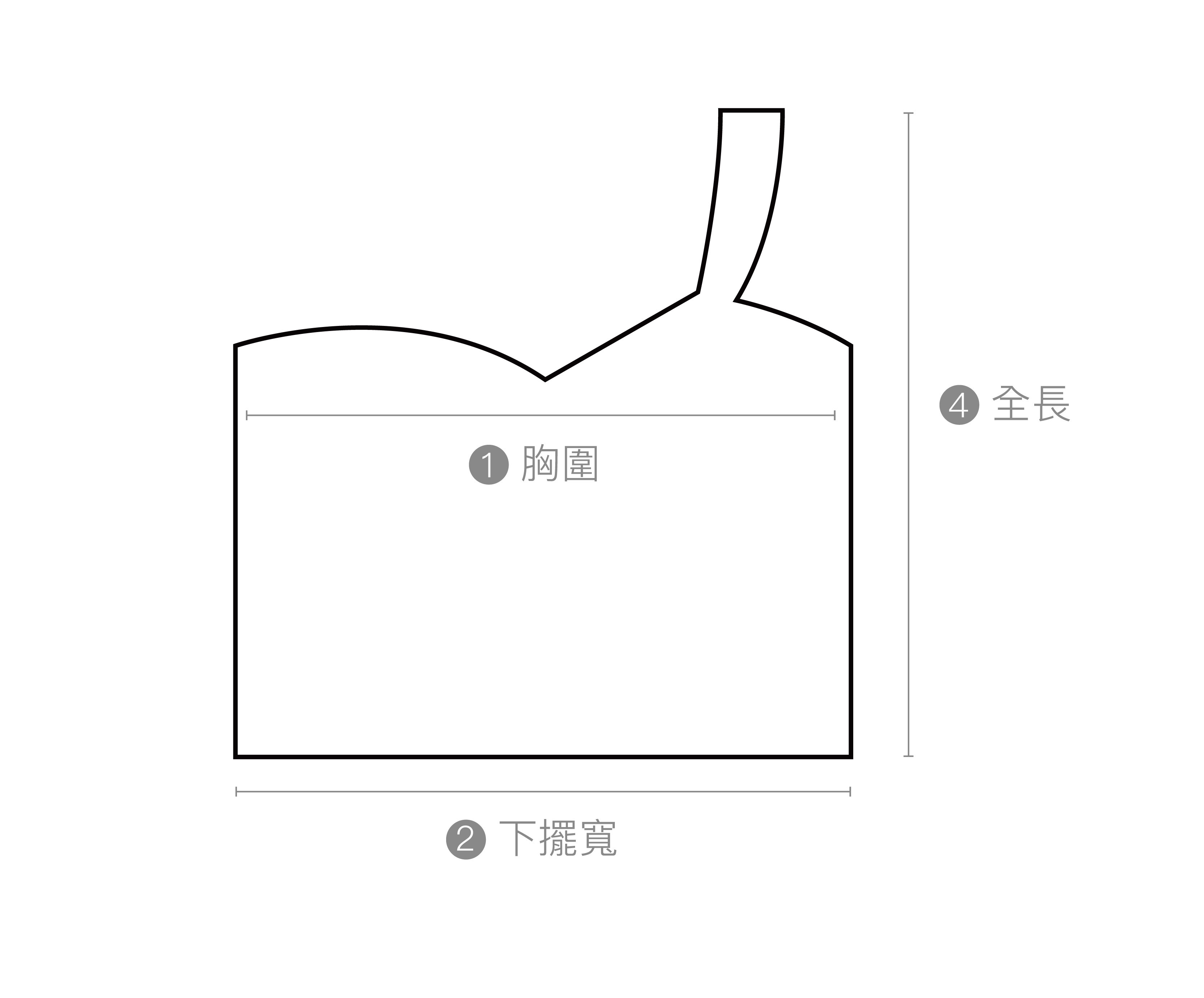 | 尺碼 | 肩寬 | 胸圍 | 下擺 | 全長(含肩帶) | 袖長 |