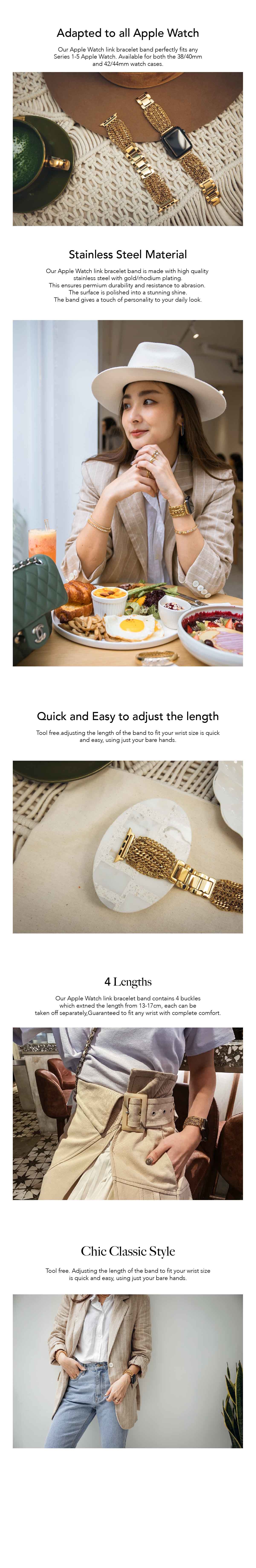 Apple Watch Stainless Steel Multi Layer Chain Band (Gold)
