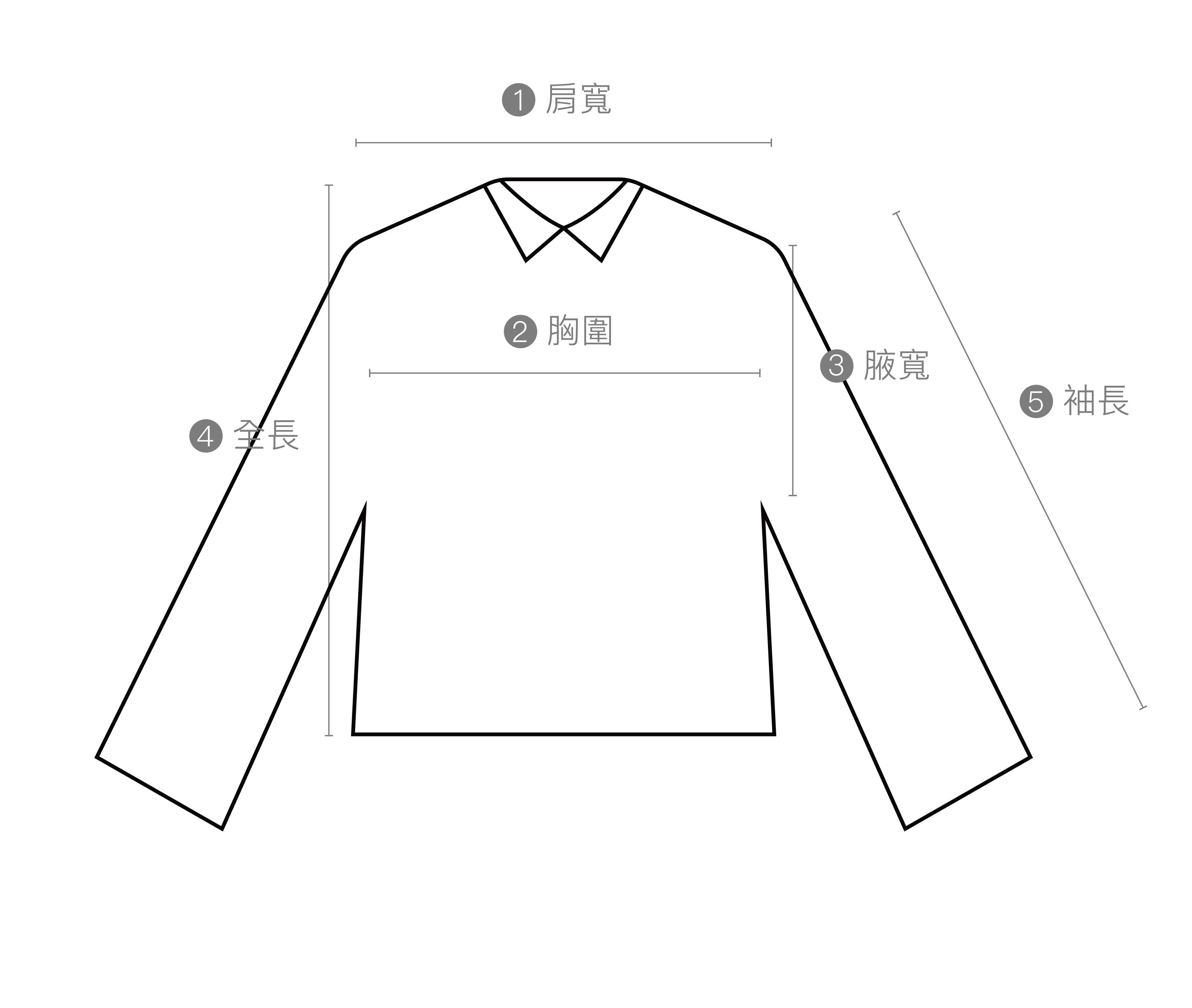 | 尺碼 | 肩寬 | 胸圍 | 腋寬 | 全長 | 袖長 |