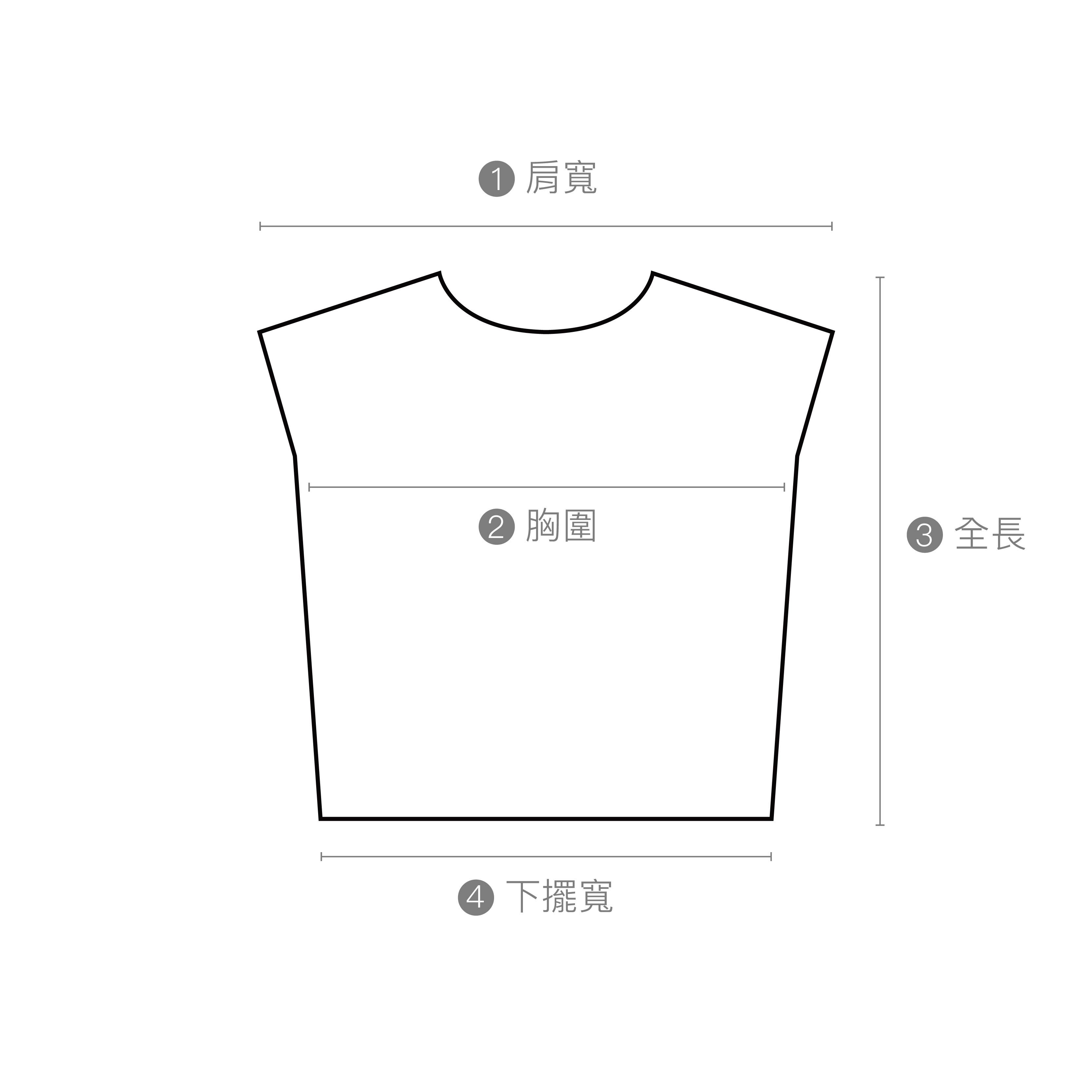 | 尺碼 | 肩寬 | 胸圍 | 下擺寬 | 全長 |