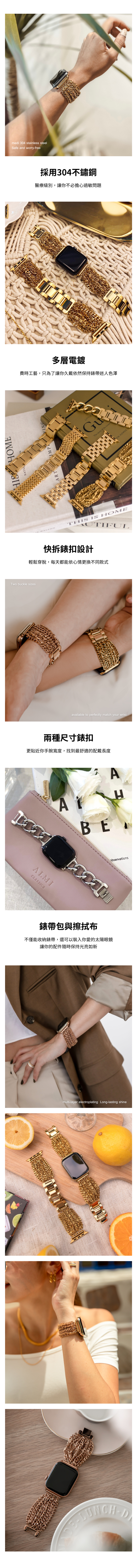 Apple Watch 不鏽鋼復古多層次鏈條錶帶(玫瑰金)