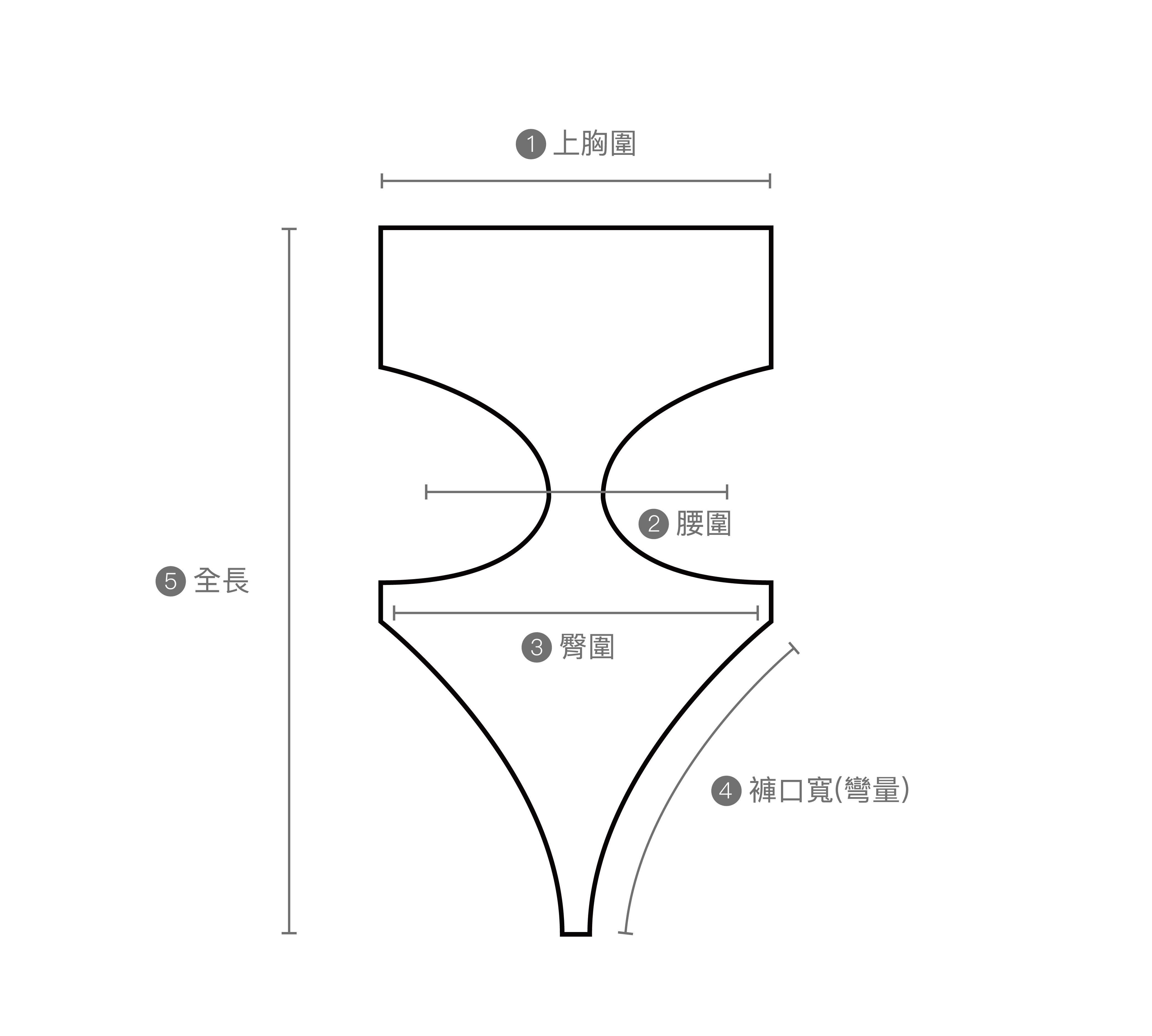 | 尺碼 | 上胸圍 | 腰圍 | 臀圍 | 褲口寬 | 全長 |